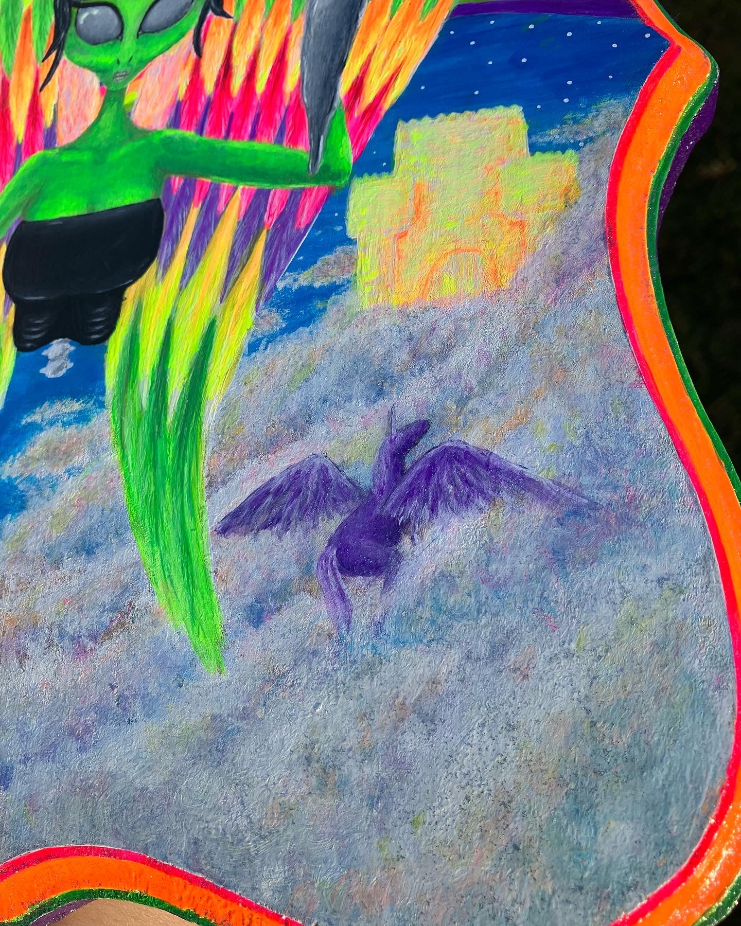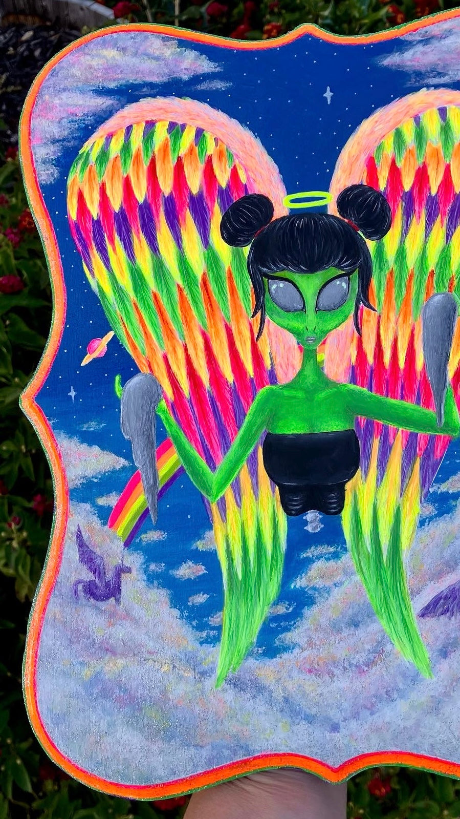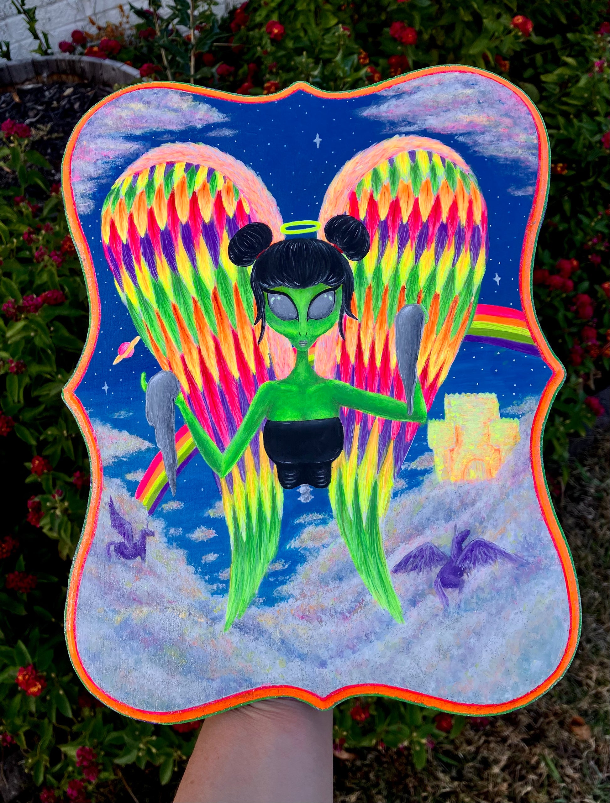 acrylic paint on wooden plaque.