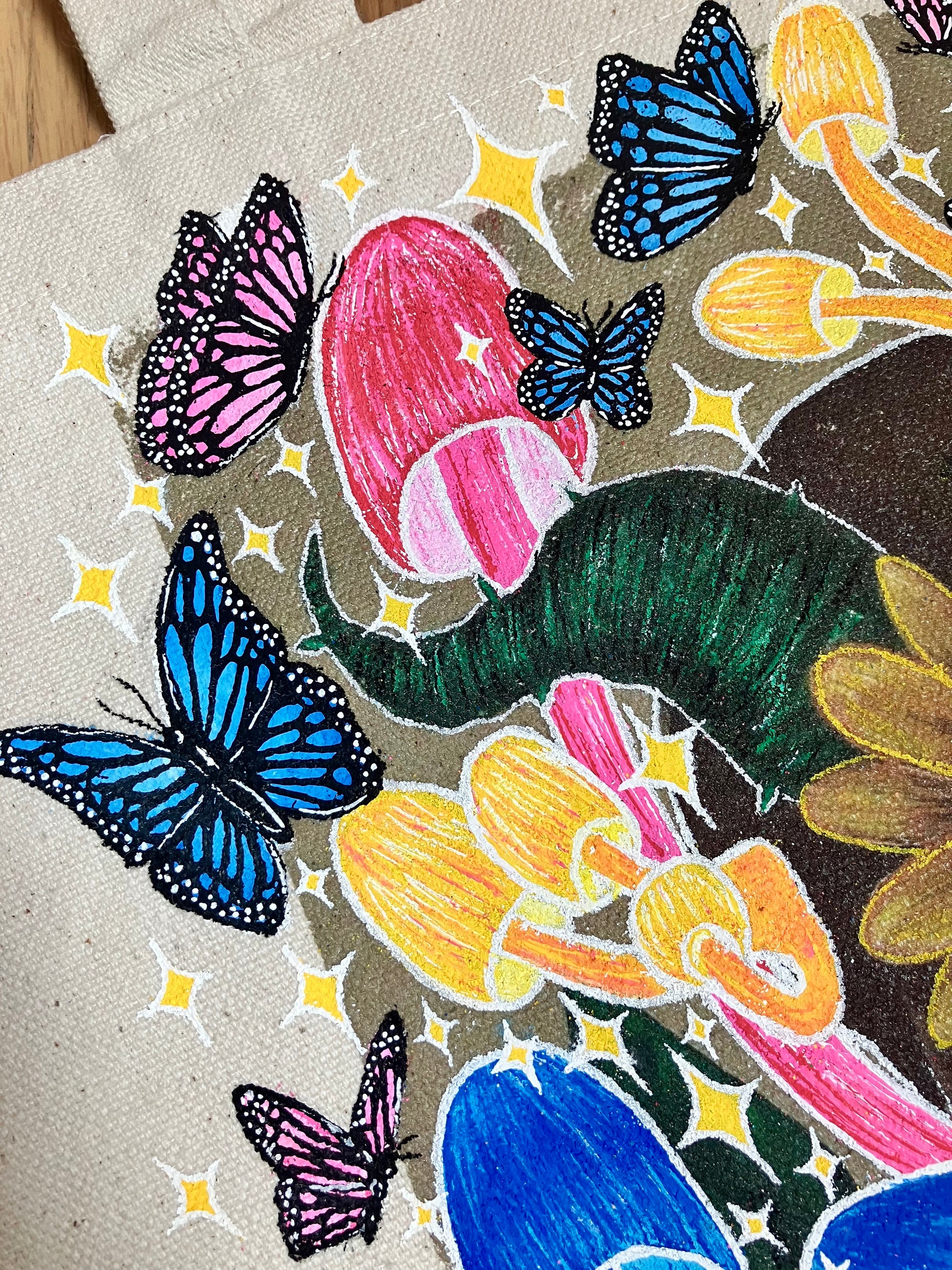 hand-painted canvas tote bag - ‘botanical beast [mushrooms]’