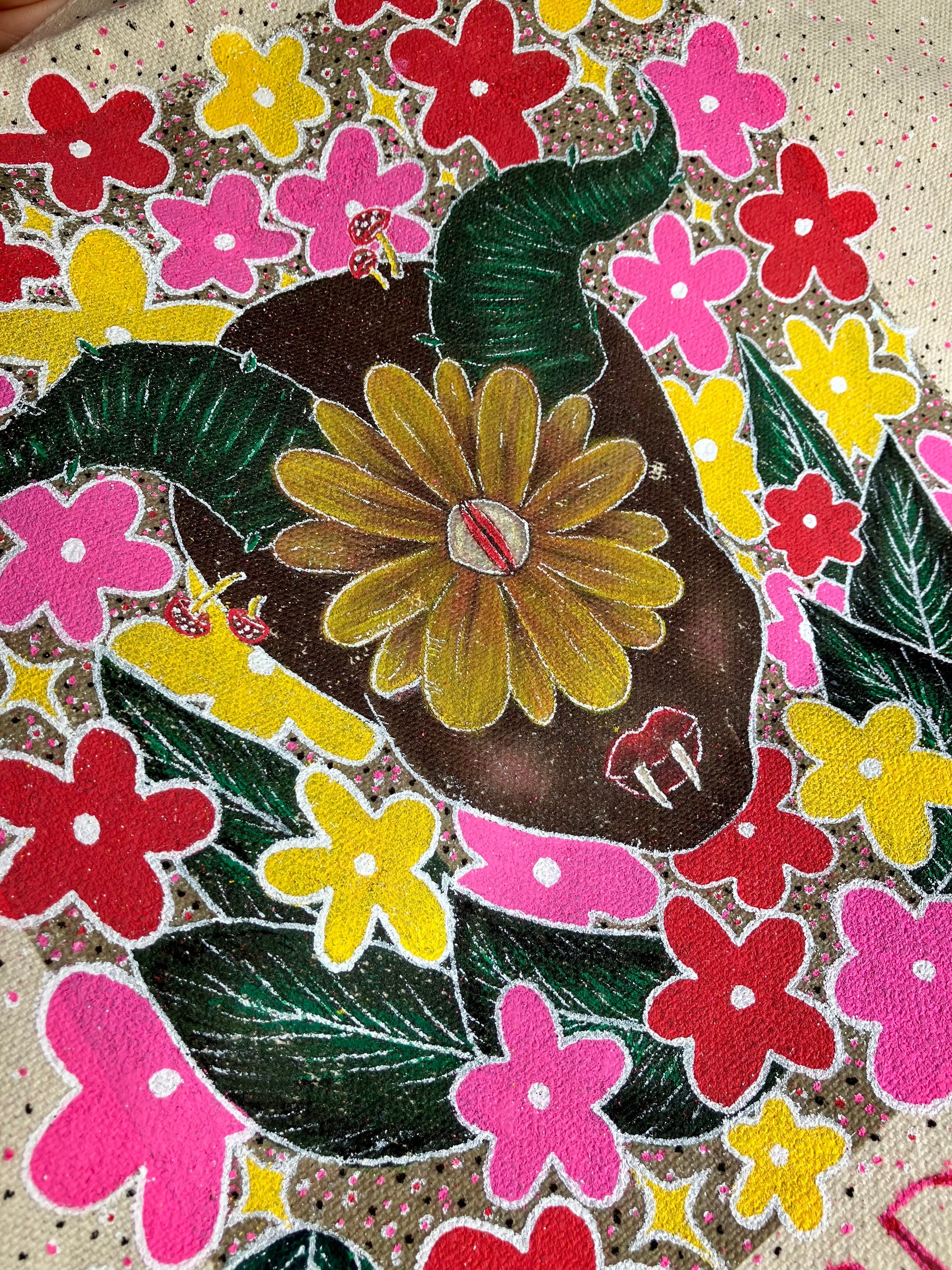 hand-painted canvas tote bag - ‘botanical beast [flowers]’
