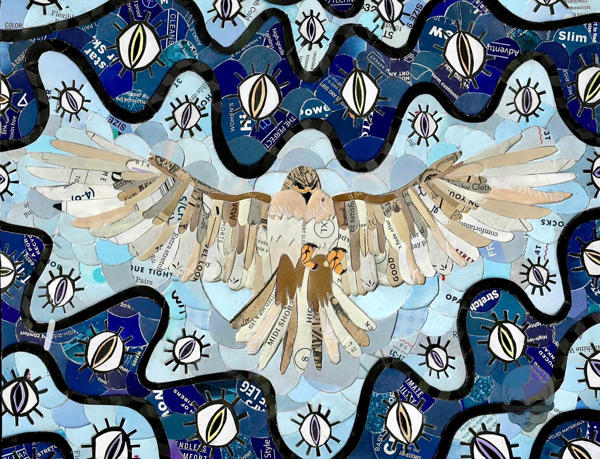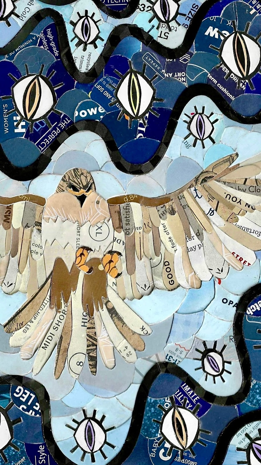 a collage made from recycled price tags + ink.